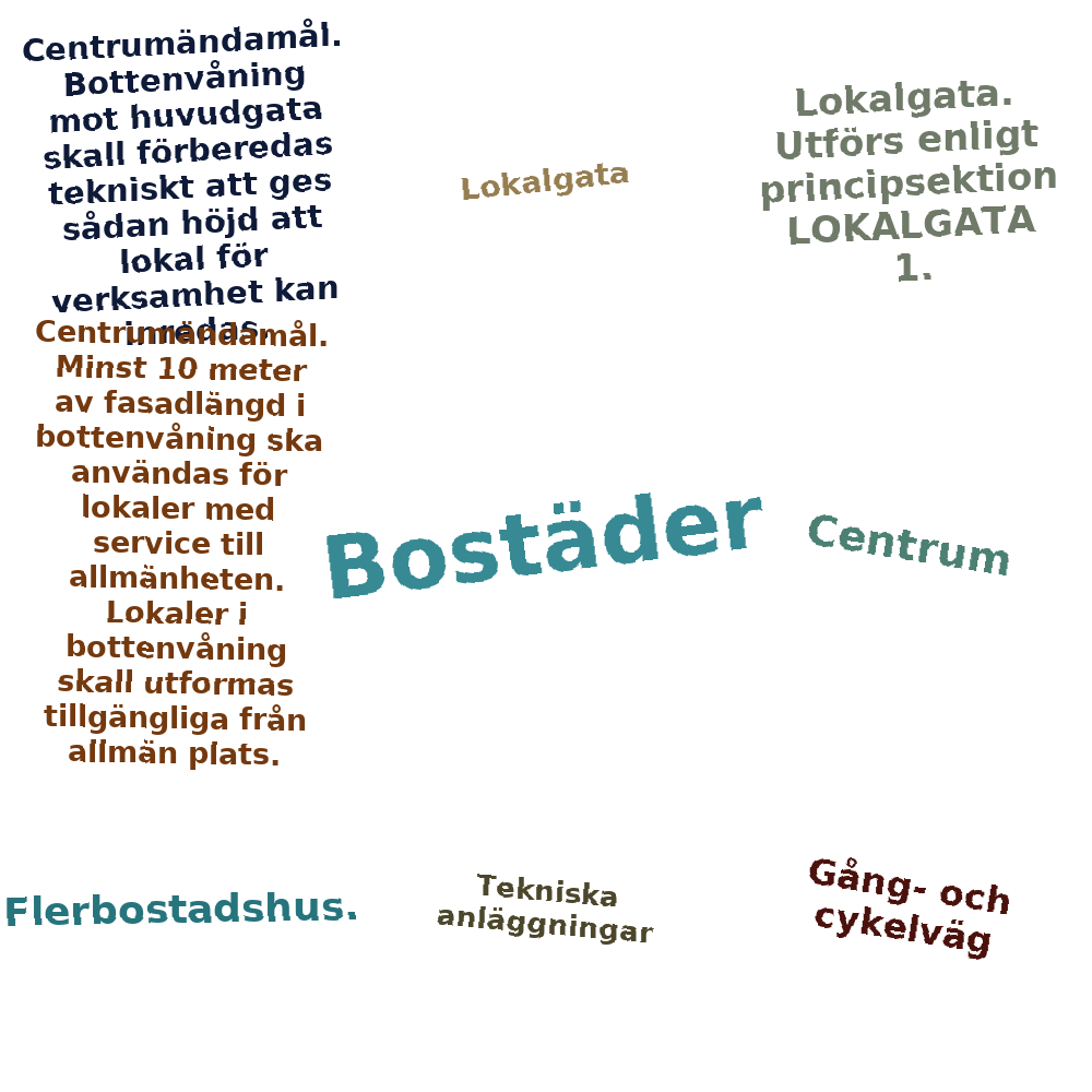 • Centrumändamål. Minst 10 meter av fasadlängd i bottenvåning ska användas för lokaler med service till allmänheten. Lokaler i bottenvåning skall utformas tillgängliga från allmän plats. (6)